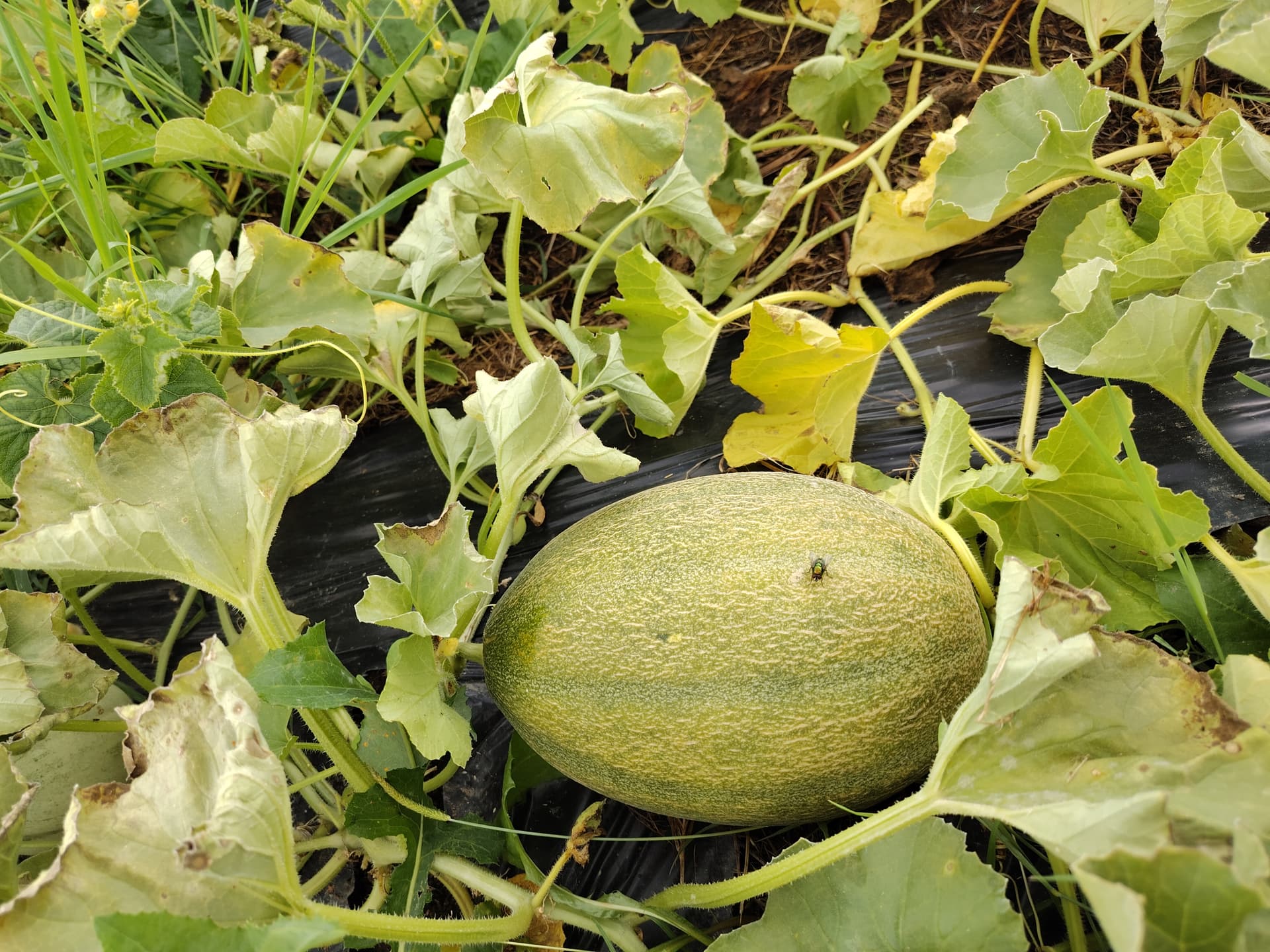 Biggest and first to flower of the melons that went through hard schooling. Size might be due to the fact that it doesn’t have competition. First few fruits are growing already.