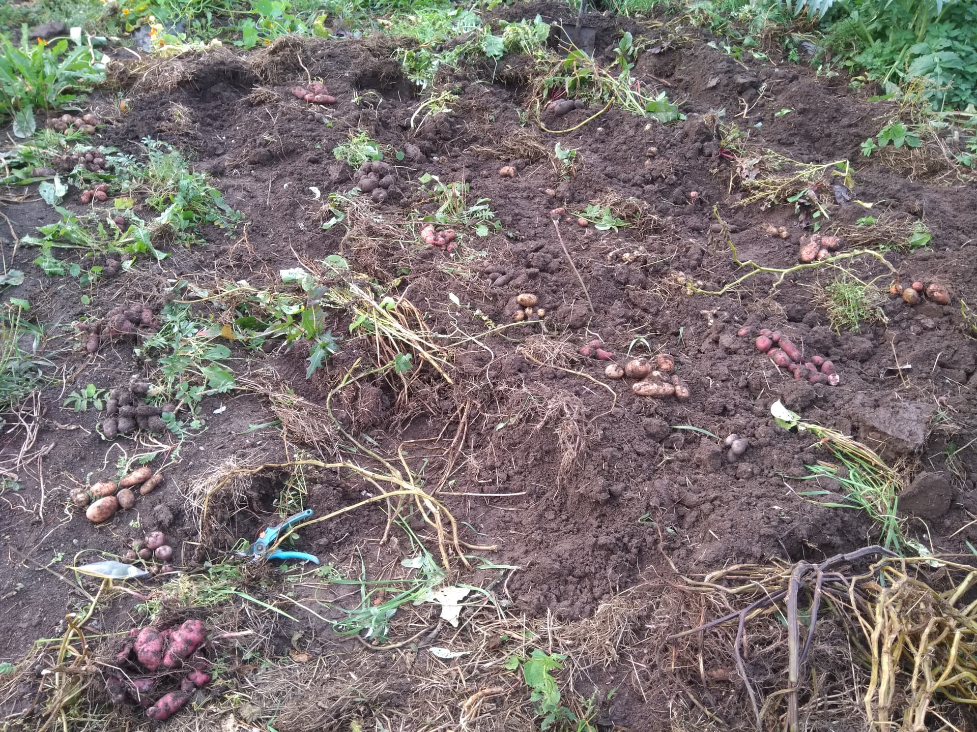 Tps from gts seeds and some other colourful mixes that I got mixed up. There is more variety both in looks and yield compared to what I got from Finland. Still some produced quite well and were alive even after month of late blight. My favorite purple leaved didnât produce more than few small ones. Not sure how much it was affected by having most of plant broken off during storm even before late blight hit. Did save those tubers although mostly I discarded anything that had below average. There were still few purple that had good yield.