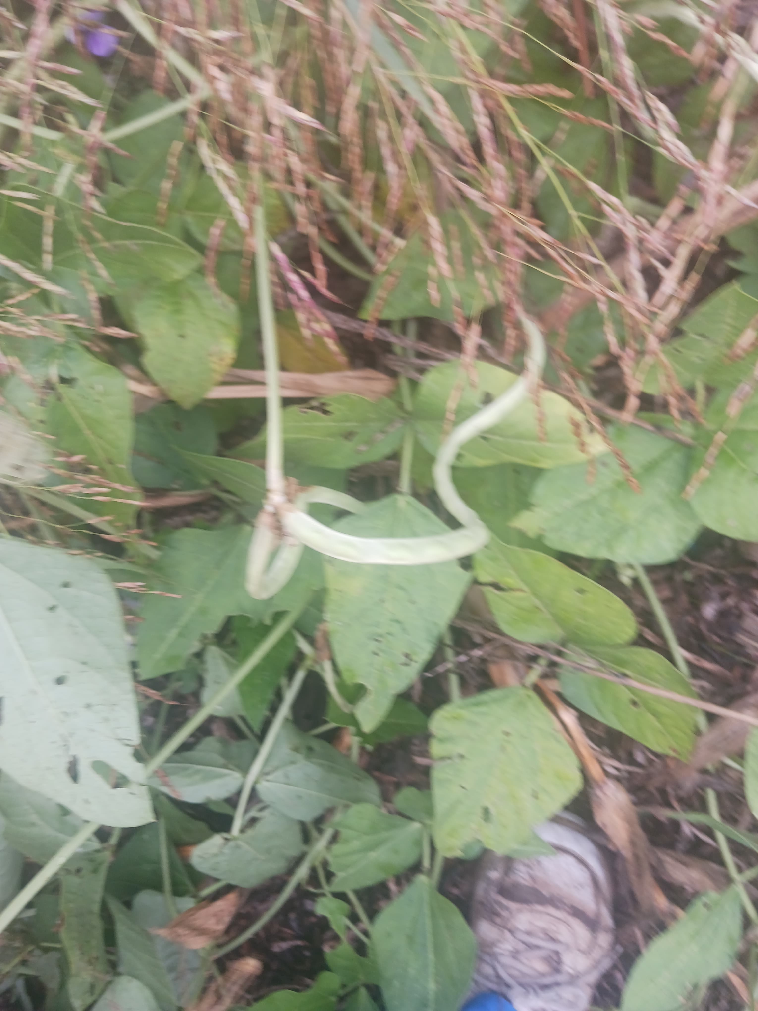I planted a mix of dry beans in among the corn. Only a few plants have seeded, and this is one of them.